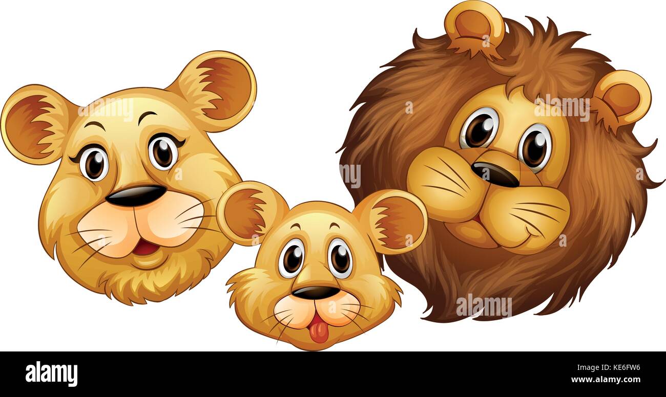 Familia de león con cara feliz ilustración Imagen Vector de stock - Alamy